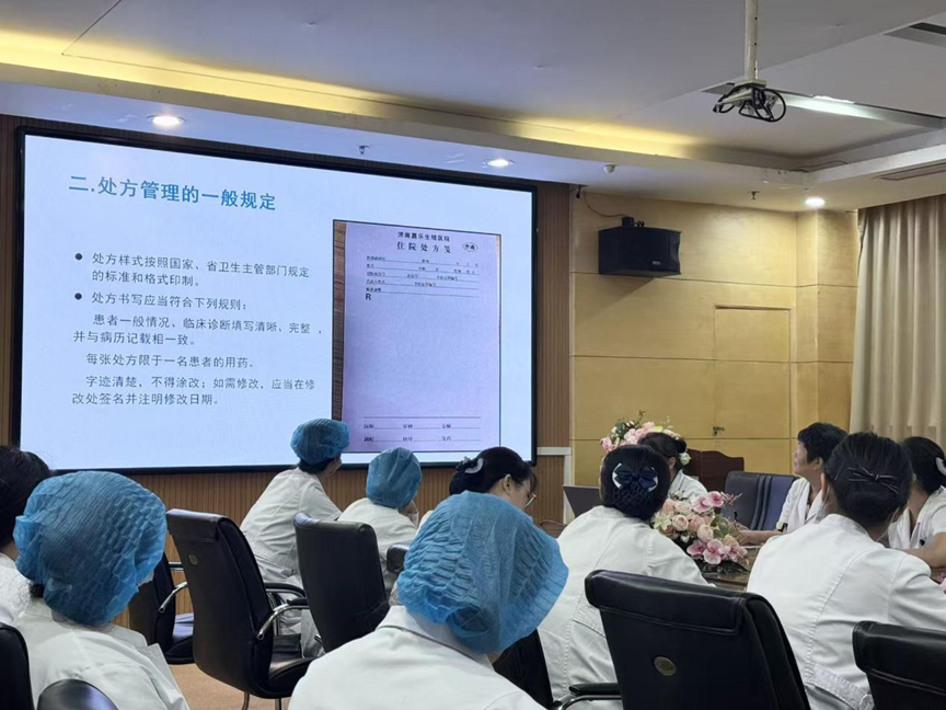 培训活动由医院药房李静主任担任主讲人。李主任依据《执业医师法》《药品管理法》《医疗机构管理条例》等一系列相关法律法规,紧密结合济南嘉乐生殖医院的实际情况,对《处方管理办法细则》进行了全面且细致的解读。其中,着重围绕处方开具、处方调剂、监督管理等关键内容展开讲解。李主任强调:“处方作为患者用药的重要凭证,其规范性和准确性直接关系到患者的治疗效果和用药安全。医师和药师在处方管理过程中肩负着重大责任与义务,必须严格遵循安全、有效、经济的用药原则,为患者提供科学合理的用药方案。”